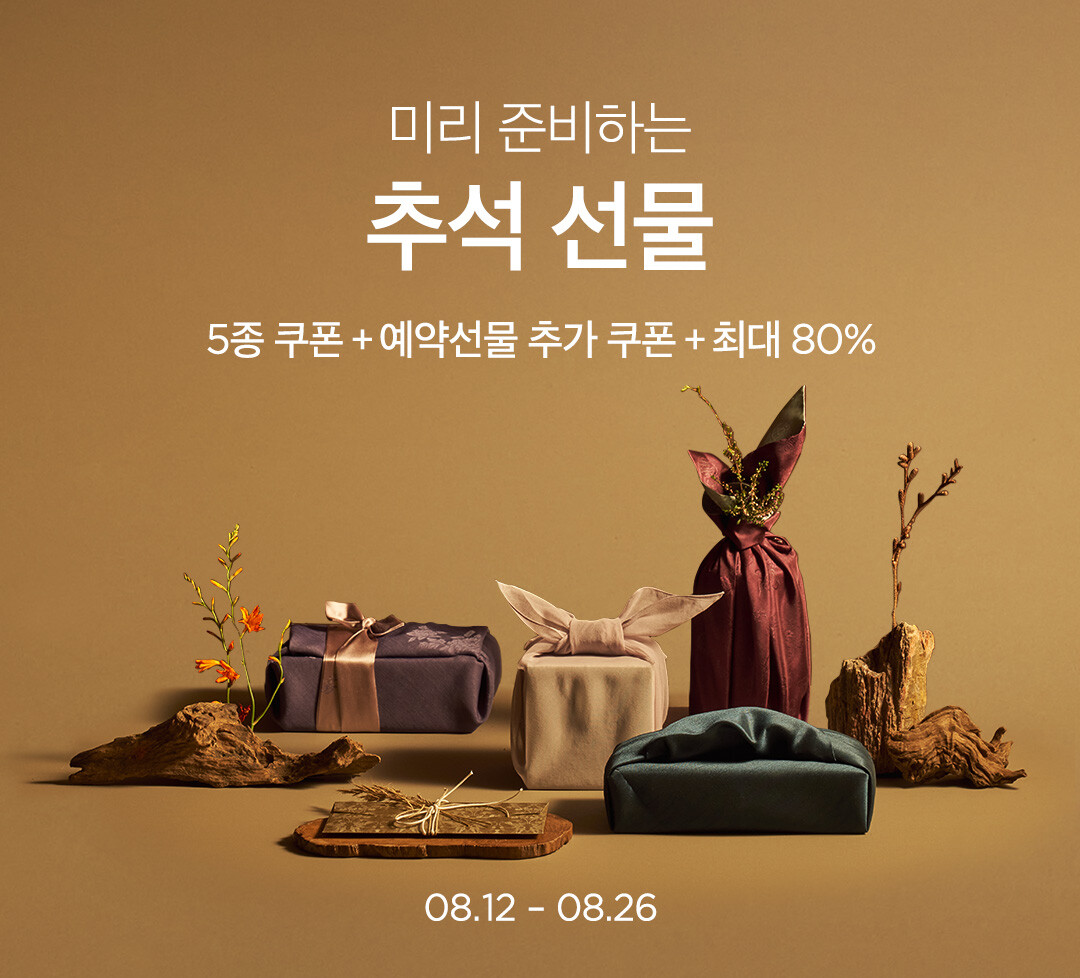 오는 26일까지 진행되는 이번 기획전에서는 한 달 앞으로 다가온 추석을 미리 준비할 수 있도록 총 1300여 가지 상품을 최대 80% 할인한다. 선물 고민을 덜어드리고자 가격대별, 카테고리별, 키워드별로 추천 상품들을 선보이는 것이 특징이다.
