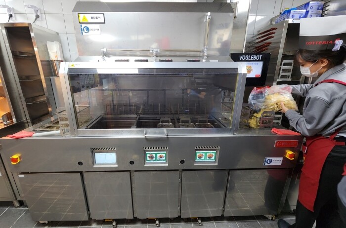 | ▲ 롯데리아 서울대입구역점에 도입한 튀김 조리 로봇 ‘보글봇’.<사진=롯데GRS> |