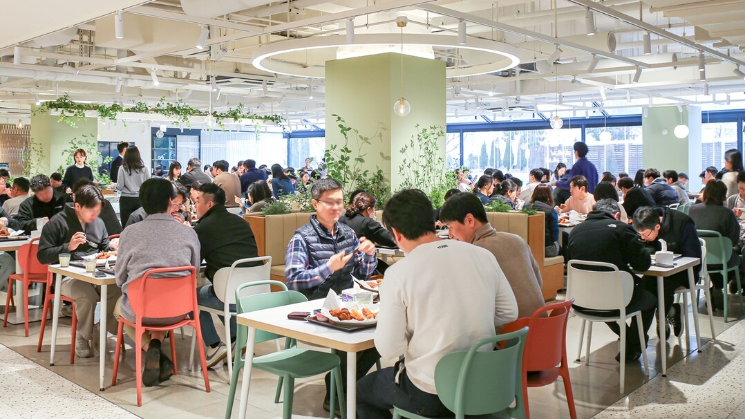 | ▲ 아워홈이 납품하는 식당에서 사원들이 식사를 즐기고 있다/사진=아워홈 |